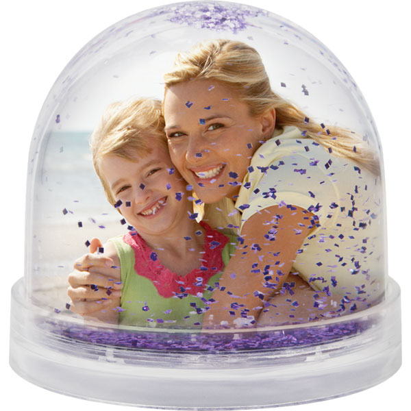 • snehová guľa s lietajúcimi fialovými třpytkami