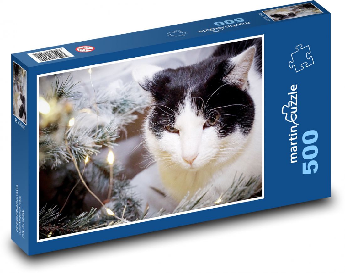 Vianočný stromček - mačka, domáce zviera - Puzzle 500 dielikov, rozmer 46x30 cm