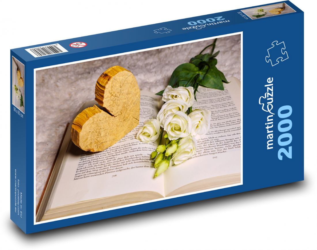 Biele ruže - srdce, kvet - Puzzle 2000 dielikov, rozmer 90x60 cm
