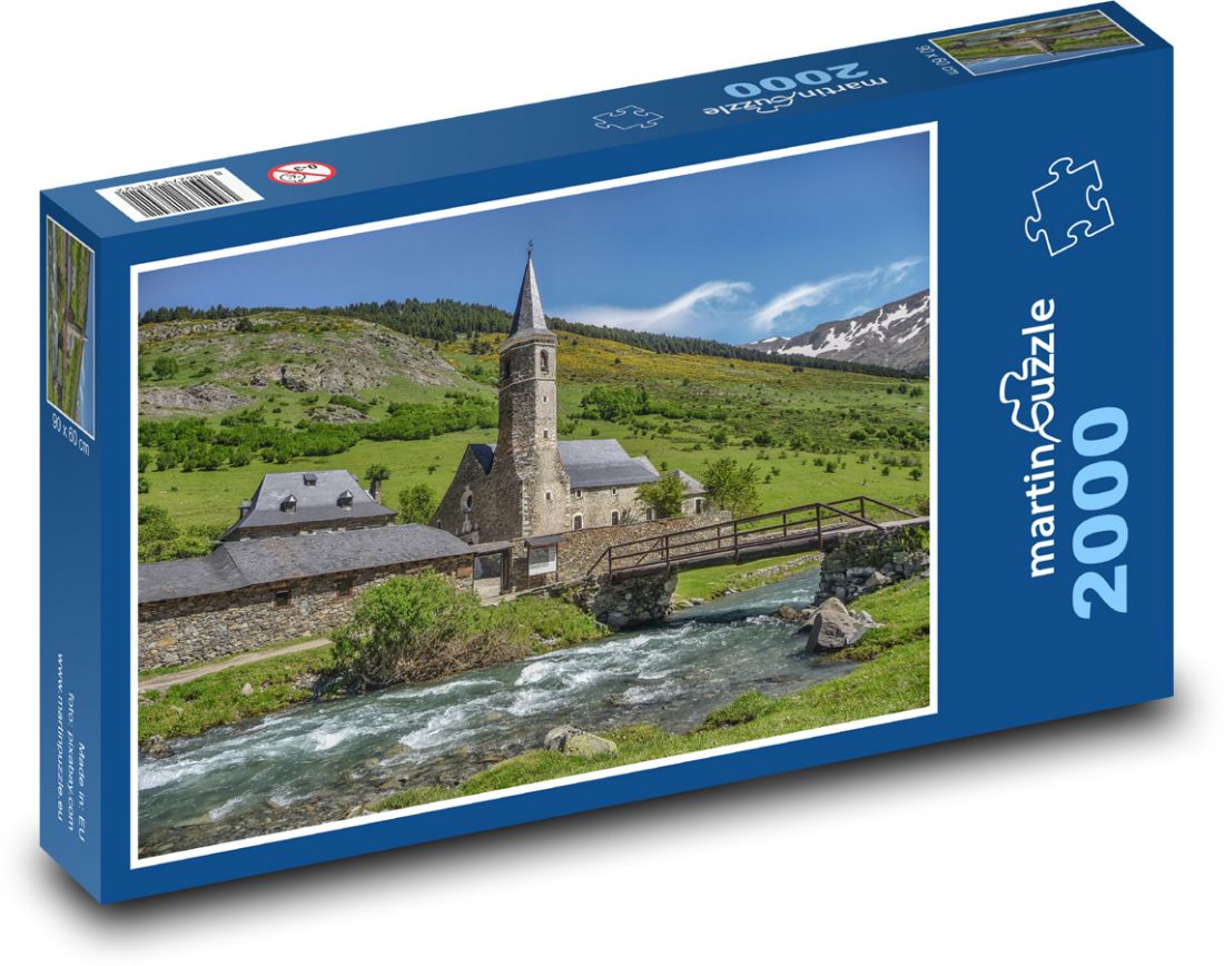 Kostol, hory, rieka - Puzzle 2000 dielikov, rozmer 90x60 cm